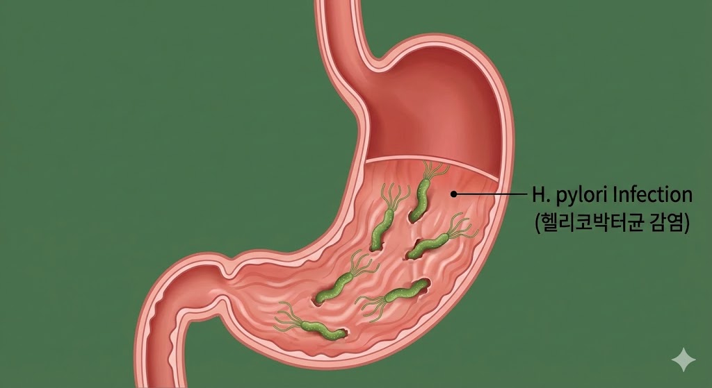 두 질환의 공통 원인은 헬리코박터균 감염, 스트레스, 불규칙한 식습관, 과음, 강한 약물 복용 등이 있습니다. 특히 장기적 스트레스는 위산 분비를 불안정하게 만들어 위염 증상과 위궤양 증상을 반복적으로 악화시키는 대표 요인입니다.