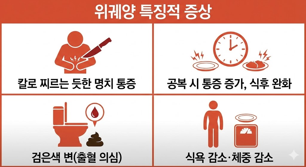 다음 증상은 단순한 위염이 아닌 심각한 위궤양 단계일 수 있으므로 즉시 병원을 방문해야 합니다.